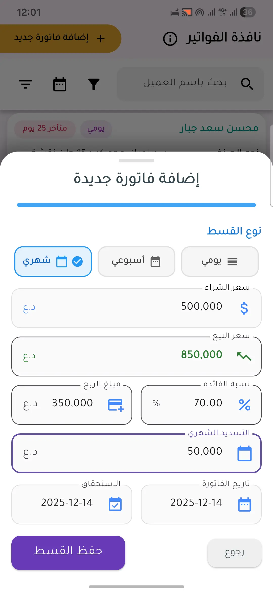 إدارة الأقساط الأحترافية