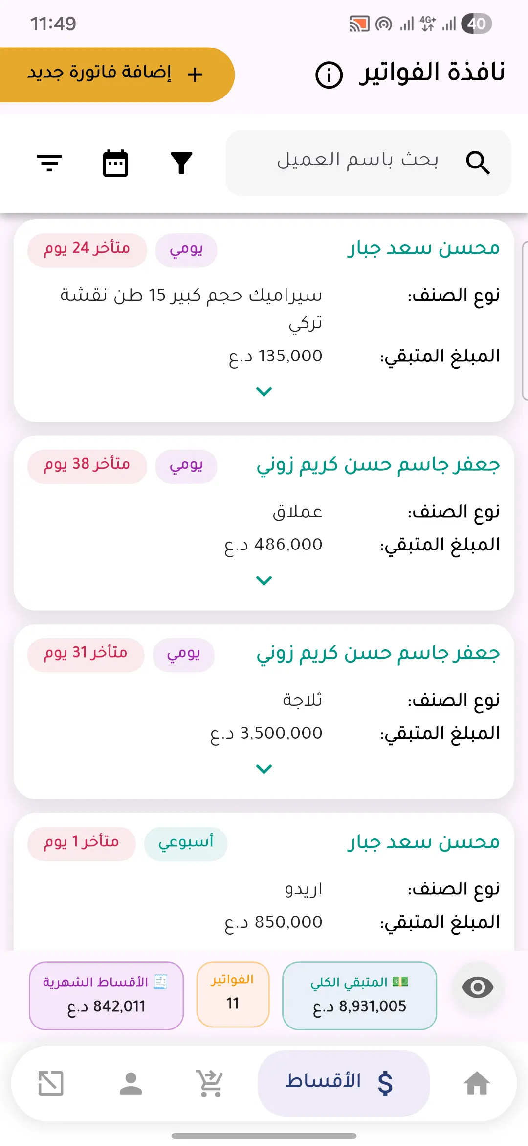 - إدارة غير محدودة للأقساط