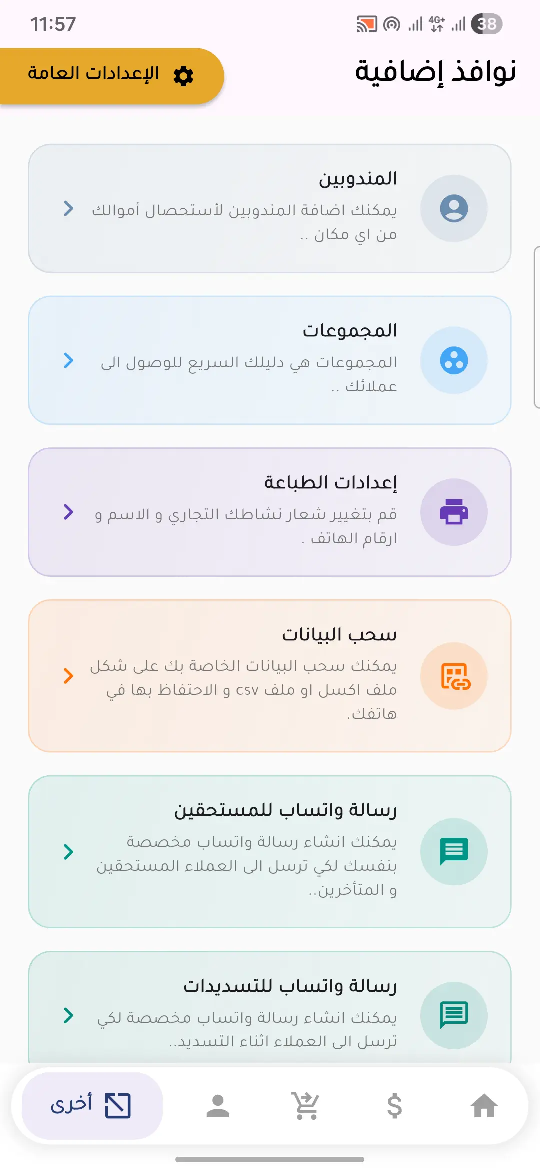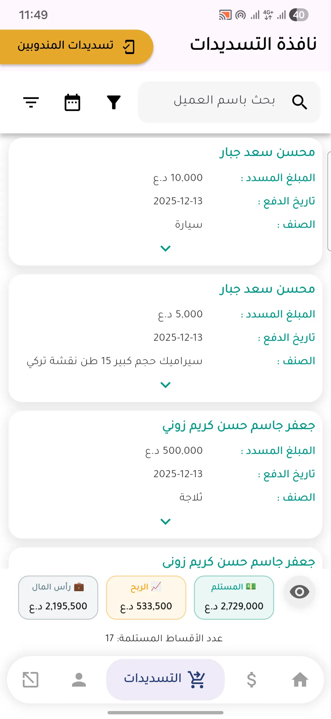 تتبع كل دينار يدخل ويخرج. نظام مدفوعات دقيق مع إيصالات فورية ومزامنة للحسابات.