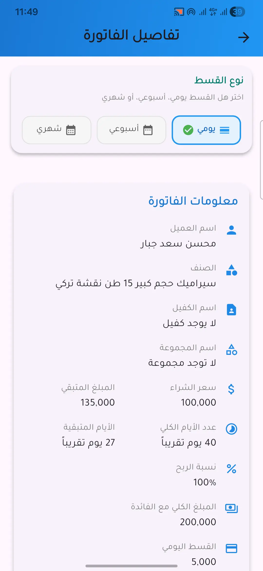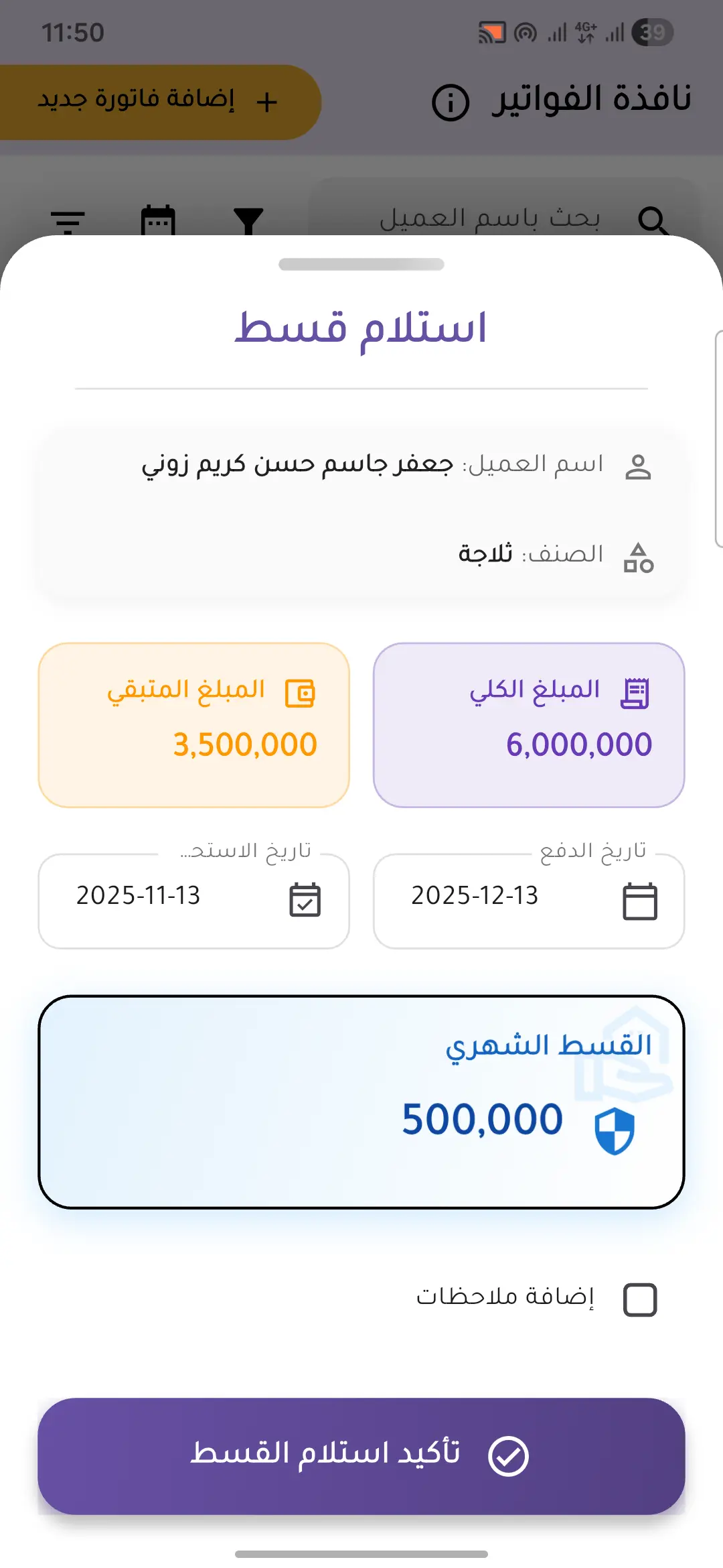 نظام متكامل لإدارة ملفات العملاء والأقساط، مع إمكانية جدولة الدفعات وتتبع حالات السداد بدقة عالية. ودع الدفاتر الورقية واستقبل المستقبل.