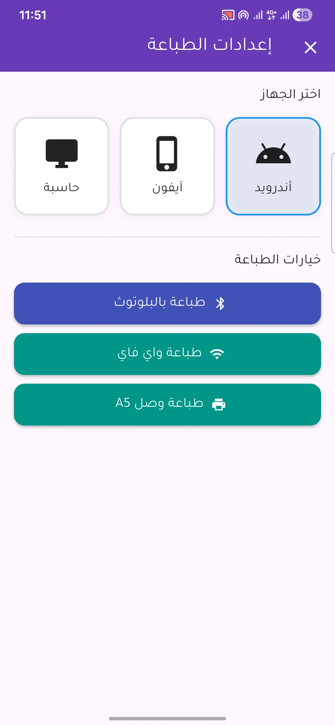 - طباعة إيصالات حرارية